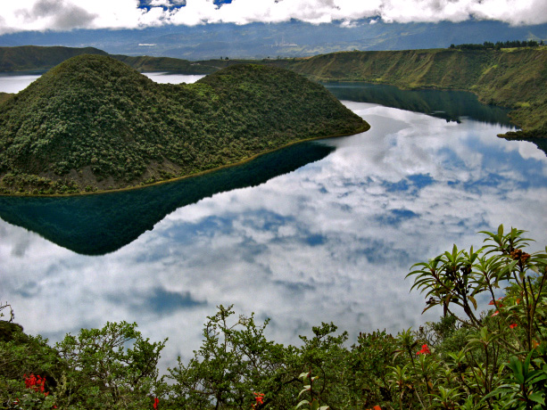 Cuicocha, which translates from Quechua rather clumsily as “Guinea-Pig Lake”, is a volcanic crater lake in the Cotacachi-Cayapas Ecological Reserve, lying between the snow-capped Imbabura and Cotacachi volcanoes, in northern Ecuador. I’d seen photos of the Laguna, with its strange humped islands, sunk high into the sierra. But as I trudged over the crest of the hill, wrapped up against the crisp Andean morning air, I stopped dead. And gasped. And had to remember to breathe.
