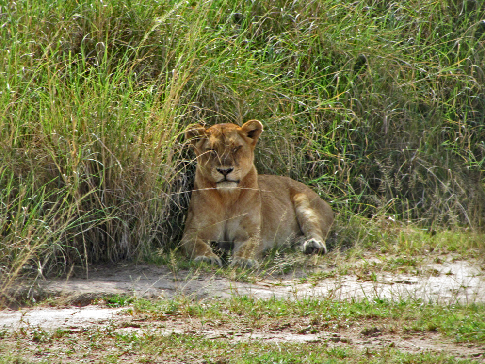 Despite his terrifying encounters, George loved the animals to bits. He recognised many of the park’s 140 lions, and had affectionately given them names. He directed the driver through the rippling grassland to where “Peter”, a young lion, was dozing in the midday heat. There was no need to be afraid, he explained – Peter’s bulging belly meant he was not looking for his next meal just yet. The feline did indeed looks too full to move, and was a perfectly behaved model as everyone snapped away.
