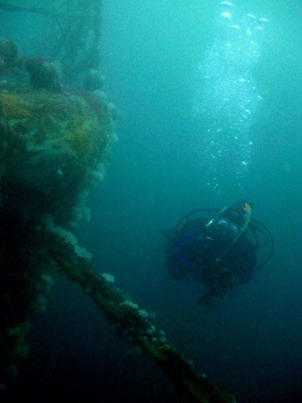 But I don’t think anyone can ever be prepared for their first proper dive. I was in the water with my dive buddy, Tom – who had been diving pretty much since the sport was invented, and who I trusted – quite literally – with my life, but underwater, you cannot talk. I’ve done a few scary things before, but have always been able to tell someone – this is scary! Which is sometimes all you need. Robbed of the ability to speak, my mind was left to wander, and thoughts of exploding lungs, nitrogen narcosis and fishing net entanglement bubbled away in the watery void. As the rusted wreck finally emerged from the sediment, I tried to sort out my buoyancy; experienced divers hate it when the newbies kick up the silt and ruin it for everyone else. But as I rose gently from the seabed, I became utterly paranoid that I would shoot up to the surface, and gripped onto the wreck, never letting go with both hands, ever. I also wanted to stay within emergency grabbing distance of Tom, and managing the two took up most of my concentration – I wasn’t paying any attention to the wreck, or the fish, or the general incredibleness of what was around me: I was 14 metres underwater! And breathing! I then glanced at how much air I had used, and it was about twice as much as I’d thought – I had to get the anxiety under control or this dive would have to be cut short.