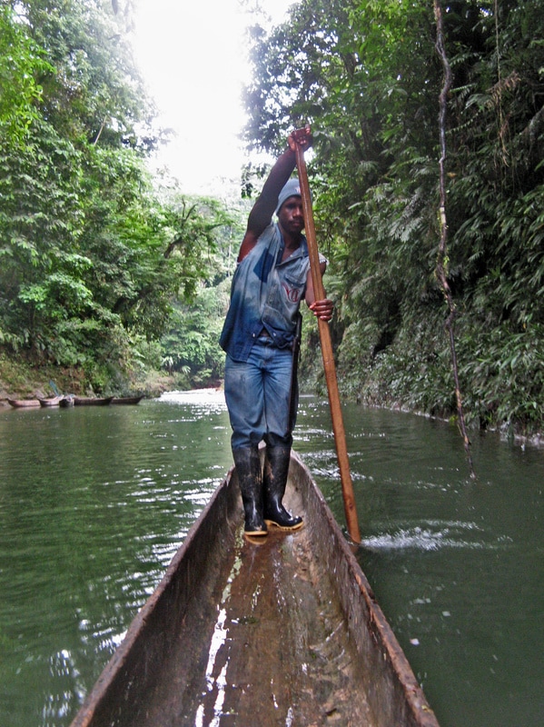Geovenni paddles the dugout canoe in the Choco rainforest Published April 9, 2017 at 599 × 800 in Where Everybody Knows Your Name: new story published by Bradt Next → Geovenni poles the dugout canoe along the river in Esmeraldas, Ecuador – in the Choco rainforest
